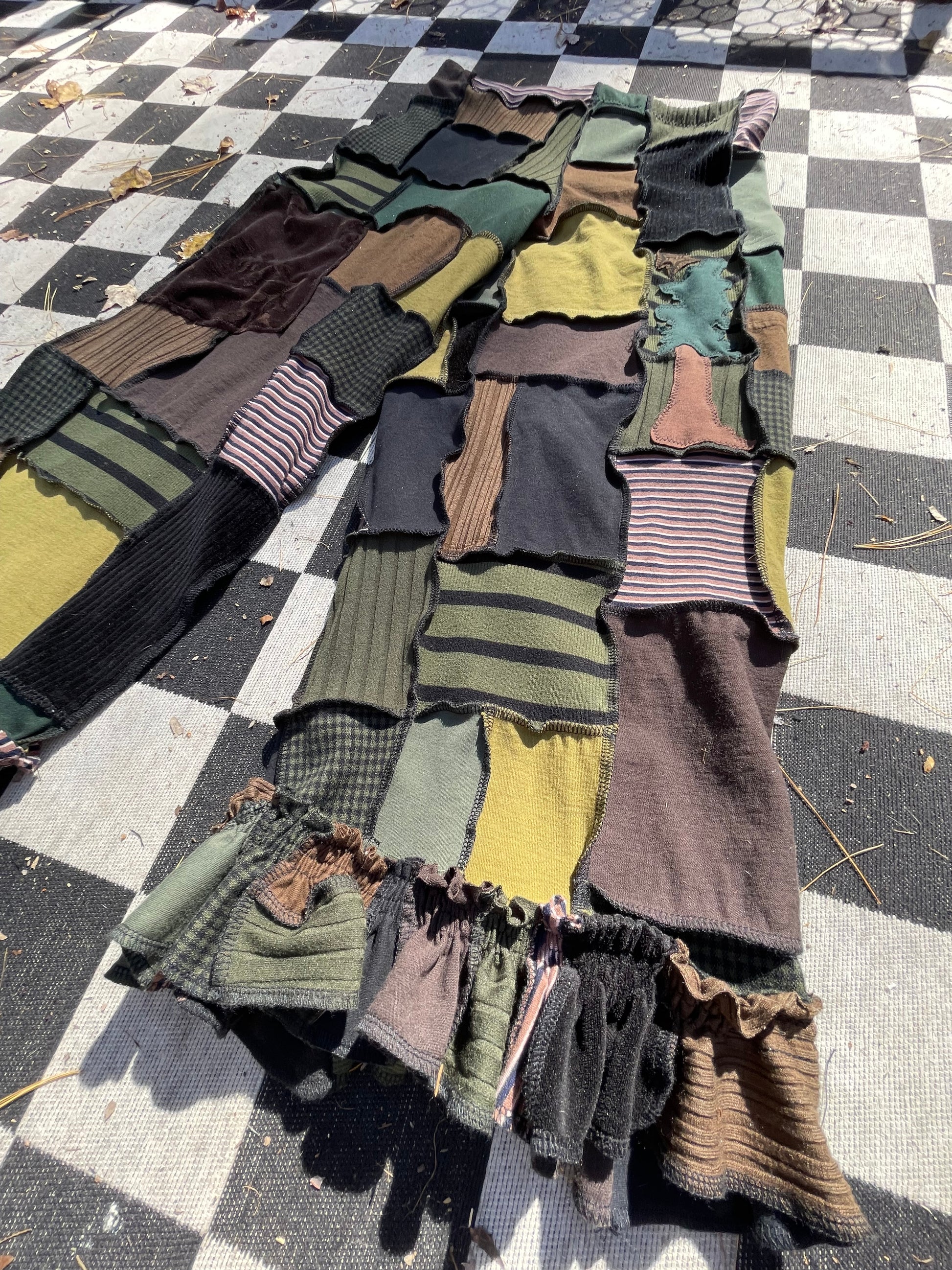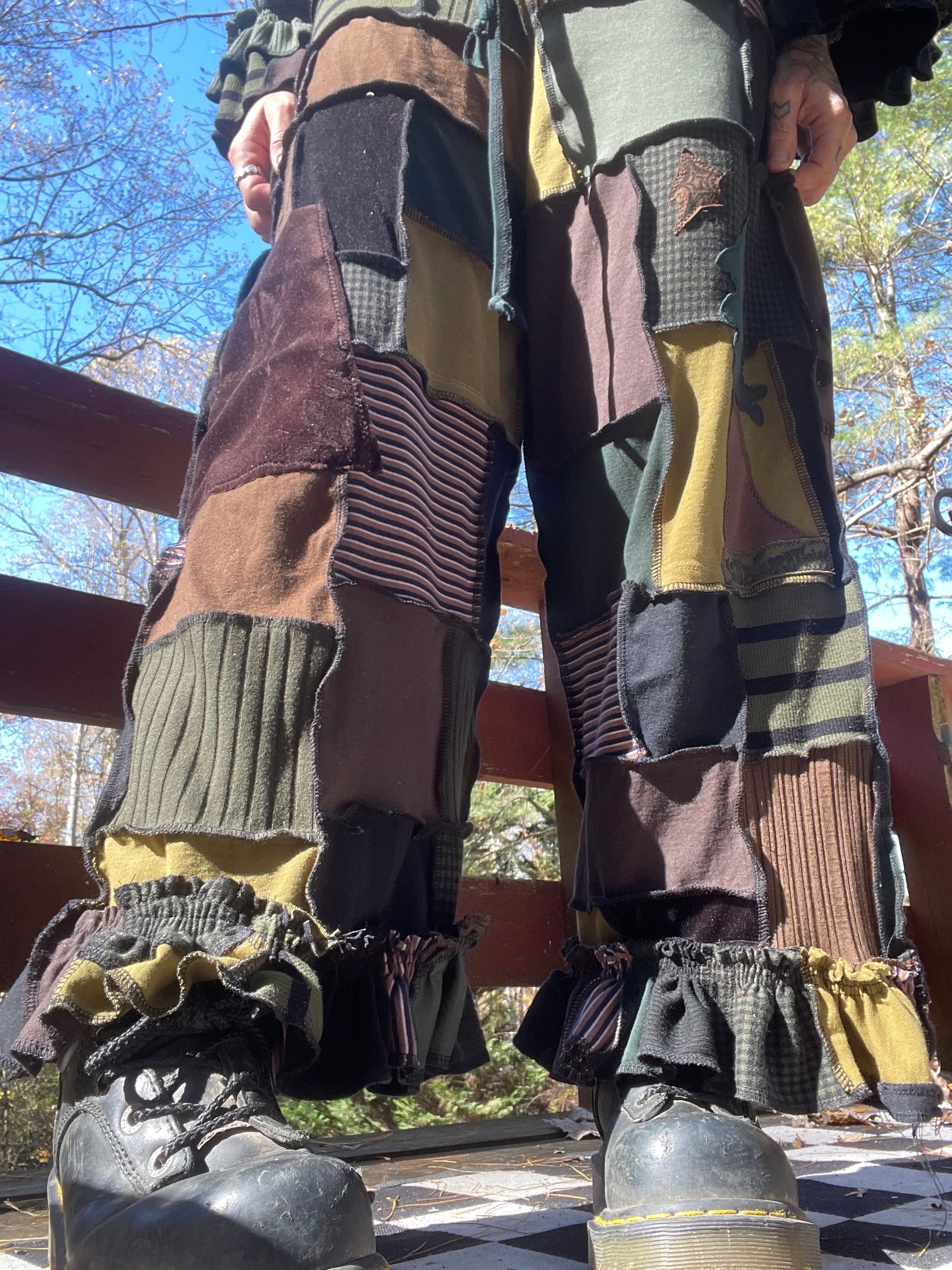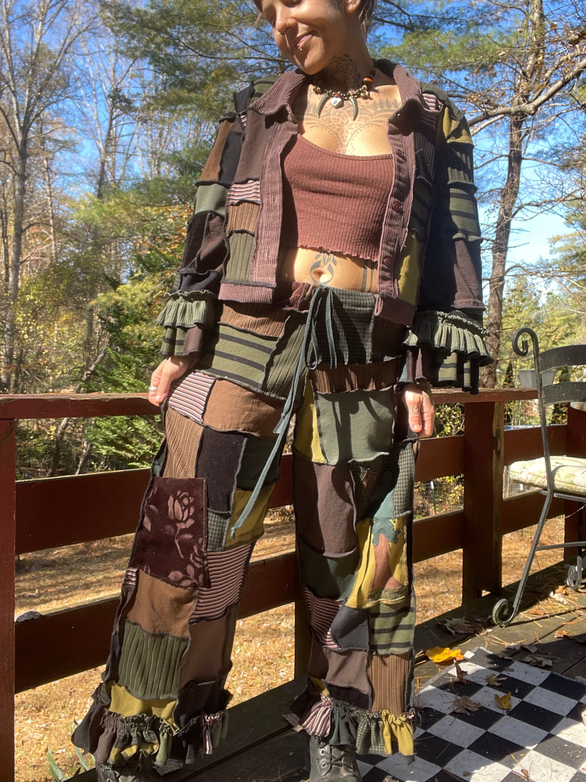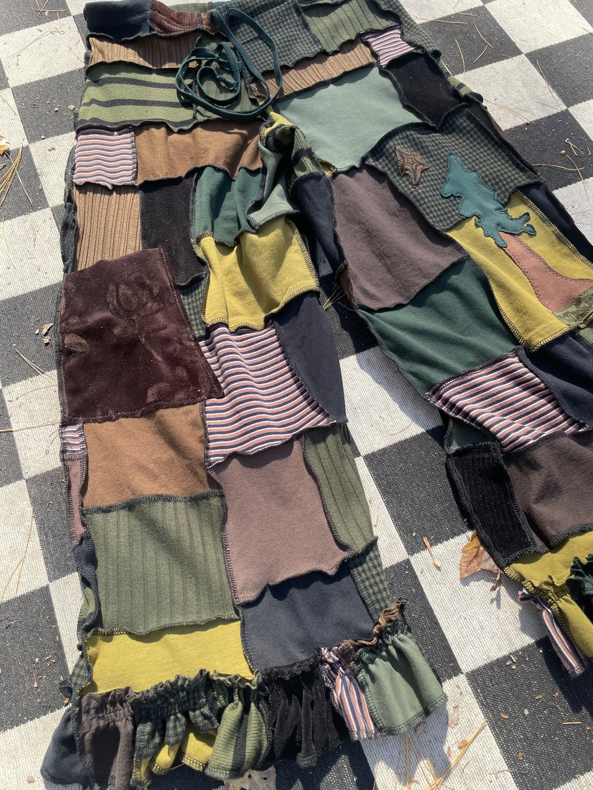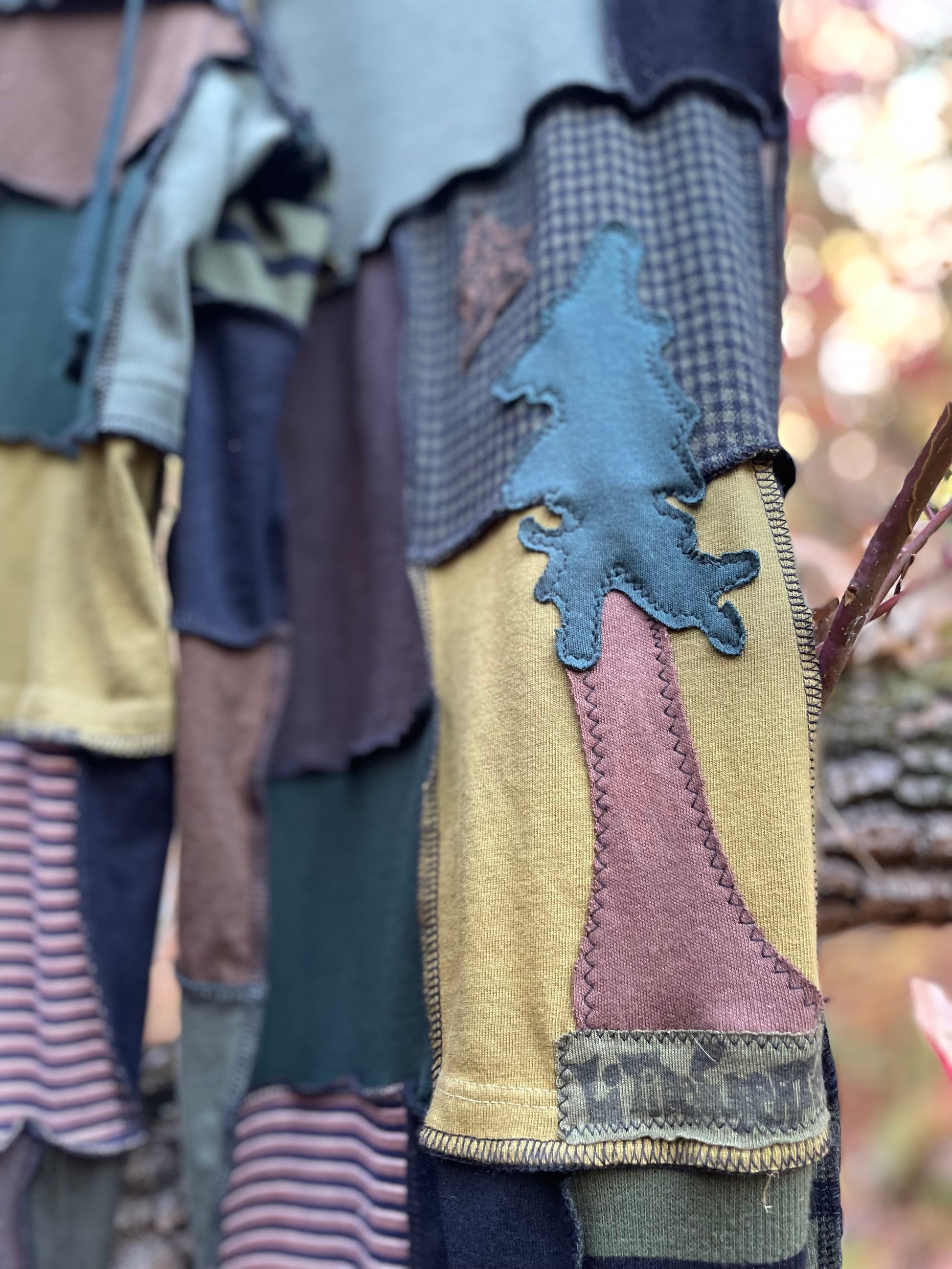 Adorned in Redwood tree cutouts && florally velour pockets ~* Fits up to waist : 38” ;; Inseam : 25” Message if size medium or smaller ~*